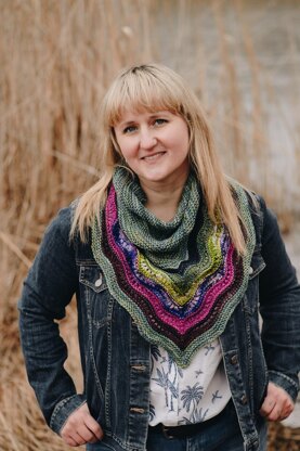 If you love bandana cowls as much as I do, you'll enjoy making Ondulado. Knit in worsted weight with colorful section of feather and fan pattern, makes a perfect knit for boring evenings. And you can use all those odd leftovers from different hats ;)