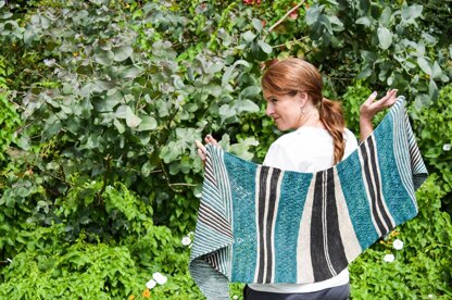 One Oh Six is a semi-circular shawl, knit sideways with a mix of stripes, lace and short rows. Its name comes from the fact that you will never have more than 106 stitches on your needle!