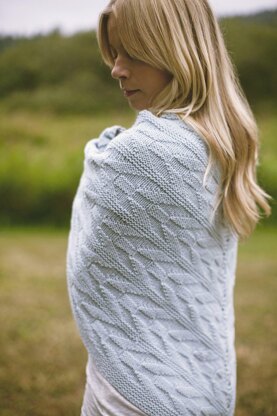 This modern shawl showcases a lovely, textured, reversible pattern that is sure to catch your eye. It’s knit in worsted-weight yarn that’s perfect to cozy up in when the weather is cool. You’ll find this pattern (and the easy-to-memorize format) a fun knit!