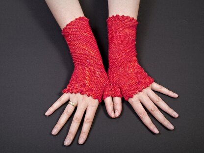 I wrote this pattern for a mystery crochet along with the fingerless glove fanatics on Ravelry, in July 2016. To be published in several chunks, the pattern had to be modular, and I decided to use the modules to explore different textures. As the original pair is worked in bright orange and they fit snuggly like a second skin, I called them Orangenhaut (orange peel skin).