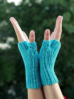 These mitts are artful and elegant. The thumbs have a particular highlight: when you put the mitt on, the owls open their eyes! Under each owl is a stacked hearts cable leading to the wrist. These mitts are crocheted in back loop only slip stitches. They are crocheted using horizontal braids, a technique I invented.