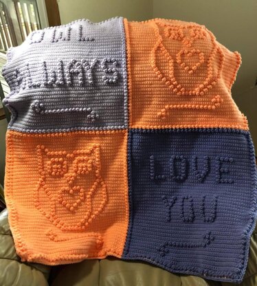 Made in one piece no sewing or joining. 2 simple stitches single crochet and popcorn or bobble This is in graph form Printable from home with * Large Easy view pages and one page computer view both are counted out for you. Suggested yarn with color chart and amounts used included with pattern. Finished size : 37 X 40 Charts are Large very easy to see after printing from home and counted.