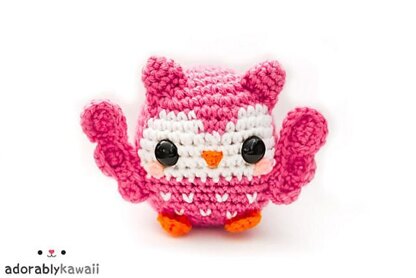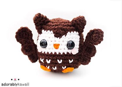 This owl is about 4" (10cm) tall and 5.5" (14cm) wide. Results will vary depending on your tension and your yarn & hook choice.