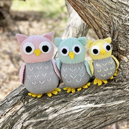 This lovely owl family knitting pattern comes in three sizes, you can knit just one or make the whole family! The large owl is 18cm (7 inches) tall, medium owl is 15cm (6 inches) tall and the small owl is 12cm (4.5 inches) tall. The body and head are knit all in one piece which means all the owls can be knit up very quickly. The pattern is knit flat and seamed and is very easy to follow with clear instructions and photos.
