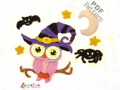 Owl Halloween crochet applique pattern