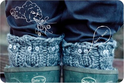 These welly warmers are knit from the top down in a super bulky/super chunky weight yarn. The cable pattern is a multiple of 5 and repeated at the top and bottom cuffs. As written, the leg warmers should measure 15” long.