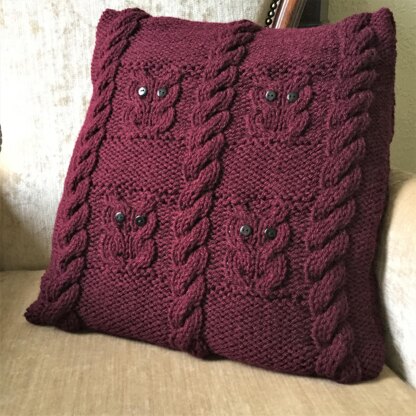 Cute owls and cables – what’s not to like? This cushion cover knits up quickly with chunky/bulky yarn and will look great in any colour. 2 long cable chains run all the way round, with 4 friendly owls on the front to keep you company!