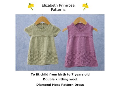 Diamond Moss Pattern Dress to fit a child from birth to 7 years old