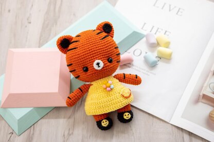 Size: The finished tiger stands approx 18cm, 7.1 inches tall.( The thinner the yarn you use, the smaller the doll will be)