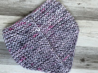 This squishy bandana shape cowl is a super quick knit. It uses increases and garter stitch to create this - and BONUS - very little purling! And NO SEAMING!