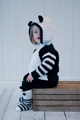 PDF crochet pattern for Children’s Panda Hoodie with matching Panda Socks. Fun whimsical design features Panda hood with ears, white torso with zipper and striped sleeves. Worked in a half double and single crochet stitches. Quick sock design is worked in double crochet stitches with cute panda face and ears. Basic sock pattern video tutorial is included and Hoodie Assembly and sewing instruction video tutorial. This is a great beginner sock and hoodie pattern!