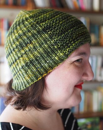 Panel is a fun, quick, and easy beanie, knitted in twisted rib with a garter stitch panel.