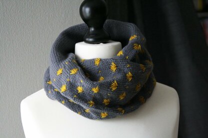Papyrus is a twisted, tubular cowl, knit in the round with 2 contrasting colors and closed with a grafted, truly invisible seam. It can be worn in many different ways. The multiple layers of fabric, created by the tubular construction as well as the colorwork, will make it wear well and will allow you to wear it in many different ways!