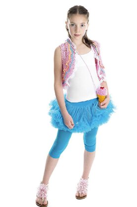 IMAGINE THIS: Use turquoise, lime, white, yellow and candy pink, as shown here, or make up your own color combinations for extra fun! Chose from three different sleeve lengths, and trim the sleeves with ruffled cuffs for your twirly little Princess. For cooler spring days, crochet it in wool or create a lovely layered look. LEVEL: Intermediate
