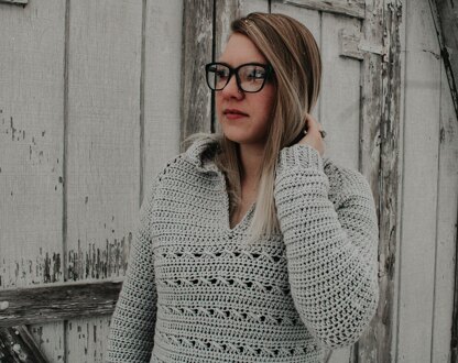 Say hello to your new MVP of your winter wardrobe; the Parker Pullover. This babe has all the cozy features of your favorite everyday hoodie but with a whole lot more personality! You won’t have to choose between comfort & style and there is no lack of either. From the deep v-neck down to the bold twisting stitches throughout the body it’s no wonder this hoodie stands out above the rest! The Parker Pullover is worked top-down with no major seaming, so you’ll be able to enjoy taking this project with you while on the go and you’ll be pleasantly surprised with how quickly she works up.