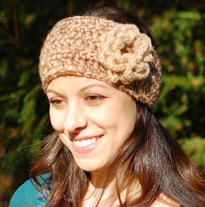 Pattern for Headband Style Earwarmer with Flower (three sizes)
