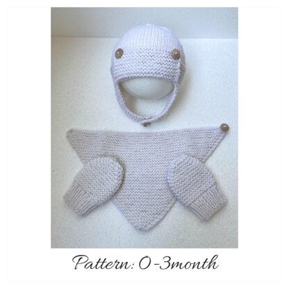 Pattern: knitted baby set - aviator hat, mittens and bandana scarf