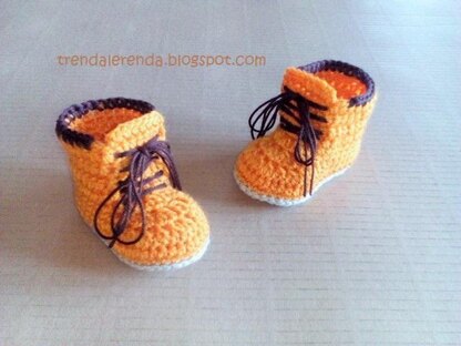 Patrón para hacer las botas Timberland en 3 tallas diferentes, desde 9 hasta 12 cm de pie.
