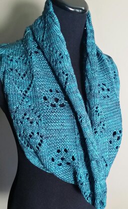 The design of this Cowl includes lace stitches that create a heart motif and its mirror image reflected, paw print motif and a fluted edges.