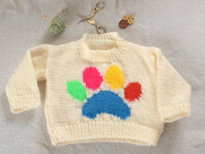 A cute little sweater with a gorgeous dog paw print across the front.