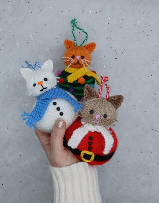 DK Knitted Christmas Cat Bauble Tree Ornaments 11cm - Set of Three Christmas Knitting Patterns. These are a lovely size to make as a quick knit.