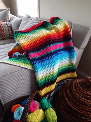 Pattern pdf includes: • more than 30 detailed color photos including photos of techniques for beginners • three size options: o 36 by 48 inches (91.5 by 122 cm) for a baby, child, or wheelchair blanket o 48 by 69 inches (122 by 175 cm) for a standard afghan throw o 25 by 69 inches (63.5 by 175 cm) for a yoga mat blanket • yardage requirements for each stripe as well as for the whole blanket for each size