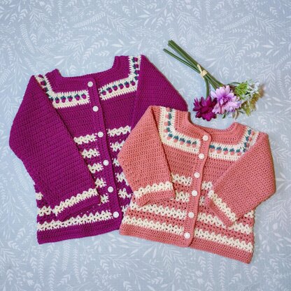 This is a top-down baby/toddler cardigan with a unique peach stitch pattern on the yoke. The peach stitch is beautifully textured and learning it will expand your crochet repertoire! The pattern level is intermediate to advanced.