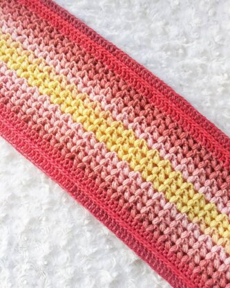 This easy intermediate crochet pattern uses approximately 725 yards of a DK weight yarn in the fiber of your choice to make an infinity scarf that is about 7.25" wide across and 74" in circumference (about 36.5" long when laying flat.) (Featured yarn is Lion Brand Wool-Ease DK Cake in color Strawberry Shortcake.) Also required are a US-H 8/5.00mm crochet hook, tapestry needle, and scissors.