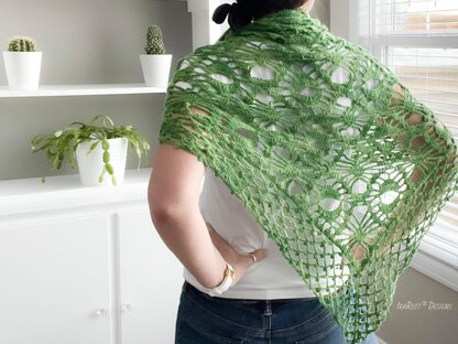 This elegant shawl is great for special occasions, but it can also be worn with your everyday outfits. If you want to scale down the lace pattern, simply use a thinner yarn with a suitable size hook and work more repeats for larger sizes. The pattern is written row-by-row using American crochet terms. It also includes a crochet diagram, special stitches, and a conversion chart to UK terms.