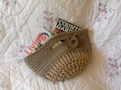 Roomy and sturdy with built in handles. Crocheted entirely in one piece with no seams. Textured with raised stitches throughout. Perfect for the market or the board room! Simple crochet stitches used. CARON BRAND ONE POUND YARN USED IN THIS PATTERN.