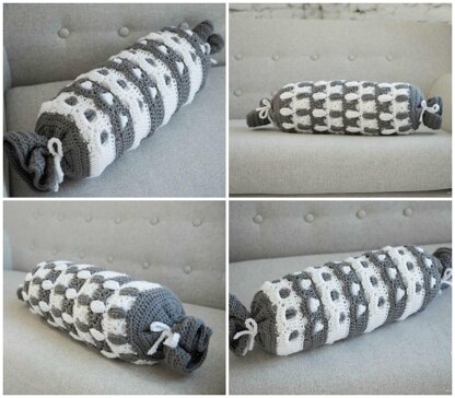 Enjoy the peak-a-boo color of the arches or a fun splash of color with the pebbles in this Pebbled Archway Reversible Bolster Pillow cover! This pattern fits a 6" x 16" diameter bolster pillow and is worked with open candy wrapper style ends for easy removal. Each side has a fun and unique design making this completely reversible.
