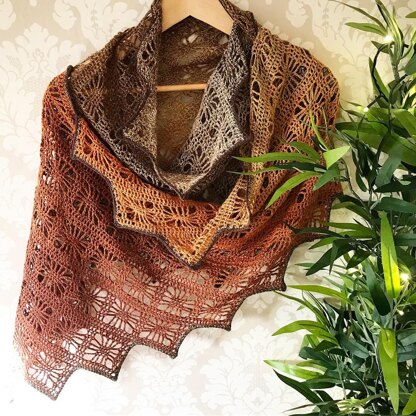 The Pecan Pie Wrap showcases the striking colour changes of a Scheepjes Whirl. The colour changes travel from side to side on a diagonal to create a real show stopper of a piece with a visually stunning pattern.
