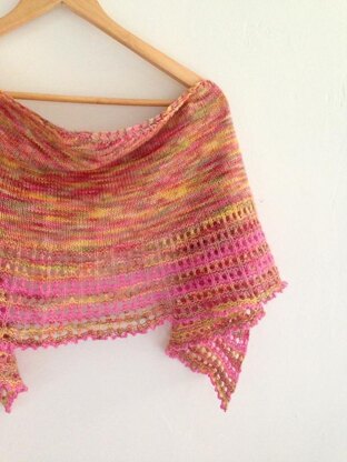 Looking for an amusing way to use a single skein of hand-painted, tonal or kettle dyed yarn? PEEK-A-BOO BAY is a simple, semi-circular shawl that provides the perfect canvas for those intriguing variegated skeins. Fields of gentle stockinette are punctuated with an easy yet engaging eyelet pattern that alternates your multi-colored yarn with a coordinating shade.