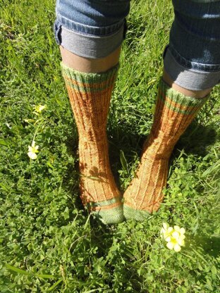 This pattern includes three sizes, three toe options, and extensive notes for modifying the length of the sock whilst maintaining the spirit of the original pattern.