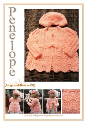 This little jacket and Beret is knitted in DK In two styles with short or long sleeves, in a pretty feather and fan pattern and both the Jacket and Beret have been finished with a bow The sizes and requirements are detailed below