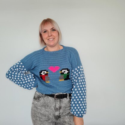 Penguins Actually is a super cute and unique Christmas jumper. Featuring adorable penguins in love with statement bobble stitch sleeves, you'll want to wear this one all year round. And what's stopping you?! I love penguins and I think they deserve to be shown off for more than one month of the year, Graded for sizes XS-5X and with cropped or full length options, this simple make hooks up easily and you can use up some of those pesky scraps to create your one-of-a-kind penguin pals.