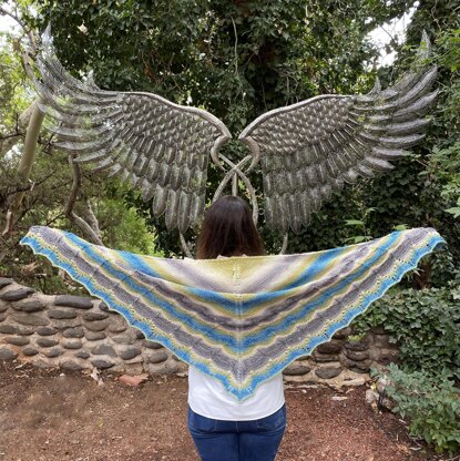 This beautiful triangle shawl gives you the look of lace, but with an easier stockinette beginning. You can cruise through half of the pattern with ease and then take your time to make the stunning lace that changes the look of the self-striping yarn.