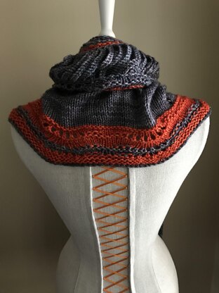 Per Se is the perfect shawl for hand dyed yarn when you want to make a statement. A simple stitch pattern creates gentle waves over a field of stockinette, set off by contrasting stripes. Cleverly designed vertical spindles around the upper section provide a unique focal point sure to catch the eye.