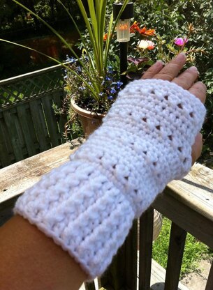 This pattern can be made for Small 6-7", Medium 7-8" or Large 8-9" hands.....if you measure the hand and match the gauge, you will have the "Perfect Fit" Fingerless Gloves when you are finished.