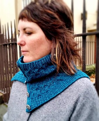 Designed to be snug fitting for extra warmth and wearability. Perfecto flares out at the centre back to sit neatly around the top of the shoulders. Buttons create visual interest and allow the cowl to be worn a multitude of ways.