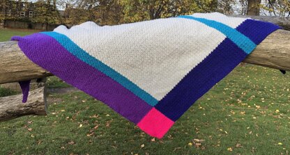 This shawl combines a bold geometric design and uses intarsia to create bisecting blocks and lines. The shawl has a textured stitch pattern, so is stretchy and comfy to wear whilst looking amazing!