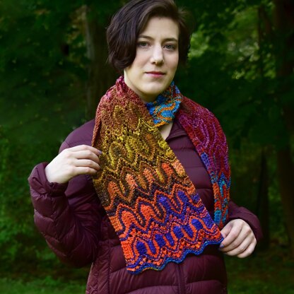The Petal Scarf is a flat version of the original Petal Cowl. The stitch shapes are inspired by flower petals, fish scales, and vintage crocheted afghans. A great cold weather knit, or a summer project when made in thinner yarn. A unique stitch is used to create an extra long chevron motif which sets this scarf apart.