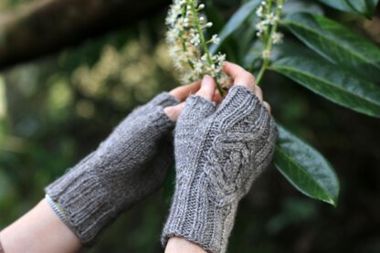 The elegant cable takes centre stage for these mitts. Quick to knit and perfect for cold days in the office! These mitts are knit in the round from the bottom up and make full use of a single skein of yarn.