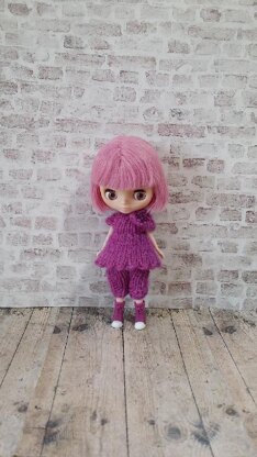 Sweet little dress and bloomer set for your petite Blythe doll. Made all in one piece with button fastening. You will only need a small leftover of laceweight yarn to knit this little beauty for your lucky doll! I do sell nice yarns that can be used for this in my etsy shop www.polly.etsy.com