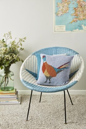 This colourful cushion features a cheerful pheasant using a combination of the intarsia and fair-isle techniques.