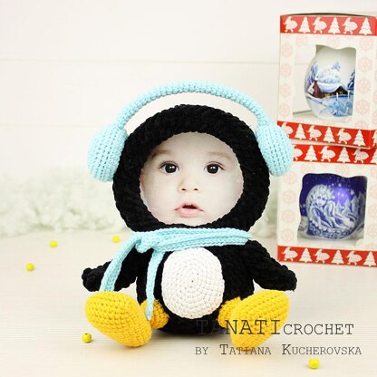 Photo Frame plush PENGUIN – size 18.5 cm (7 in), if using Bulky weight yarn (12 ply, 7 wpi, 5 : Bulky).