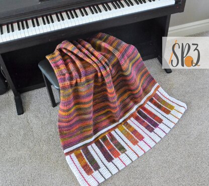The Piano Pizzazz Blanket crochet pattern is a modern, fun, and unique twist to a traditional instrument afghan. The instrument pops next to the self striping yarn in bold colors next to white. Make them in a solid color (black would be so classic) the design will be popular among all generations.