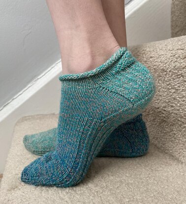 The pattern does not specify yarn requirements because how much you need depends on the size you make and the length of your foot, but most people will need between 25 and 100 g of fingering weight yarn. The socks are designed to have a snug fit to ensure that they stay on.