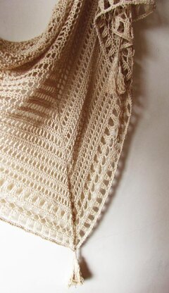 Picnic is a big triangle-shaped shawl worked from top to down. Summer fibers like linen or cotton and 5 ply yarns will work best to show the rustical design.