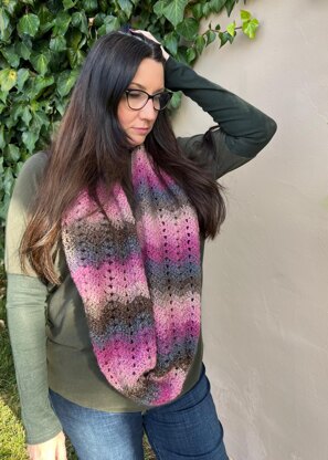 The Pied Bobble Infinity Scarf is a different take on the chevron scarf. Adding bobbles throughout the pattern gives it extra visual interest and a fun unexpected design element.